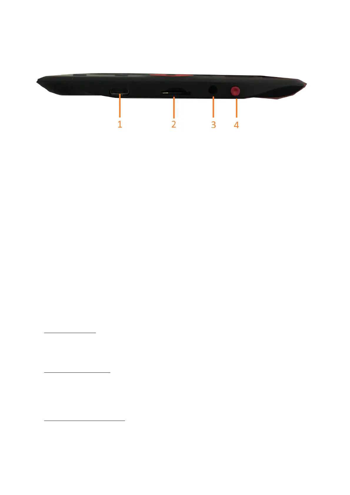 1. USB cable connection for charging and transfereing files.
