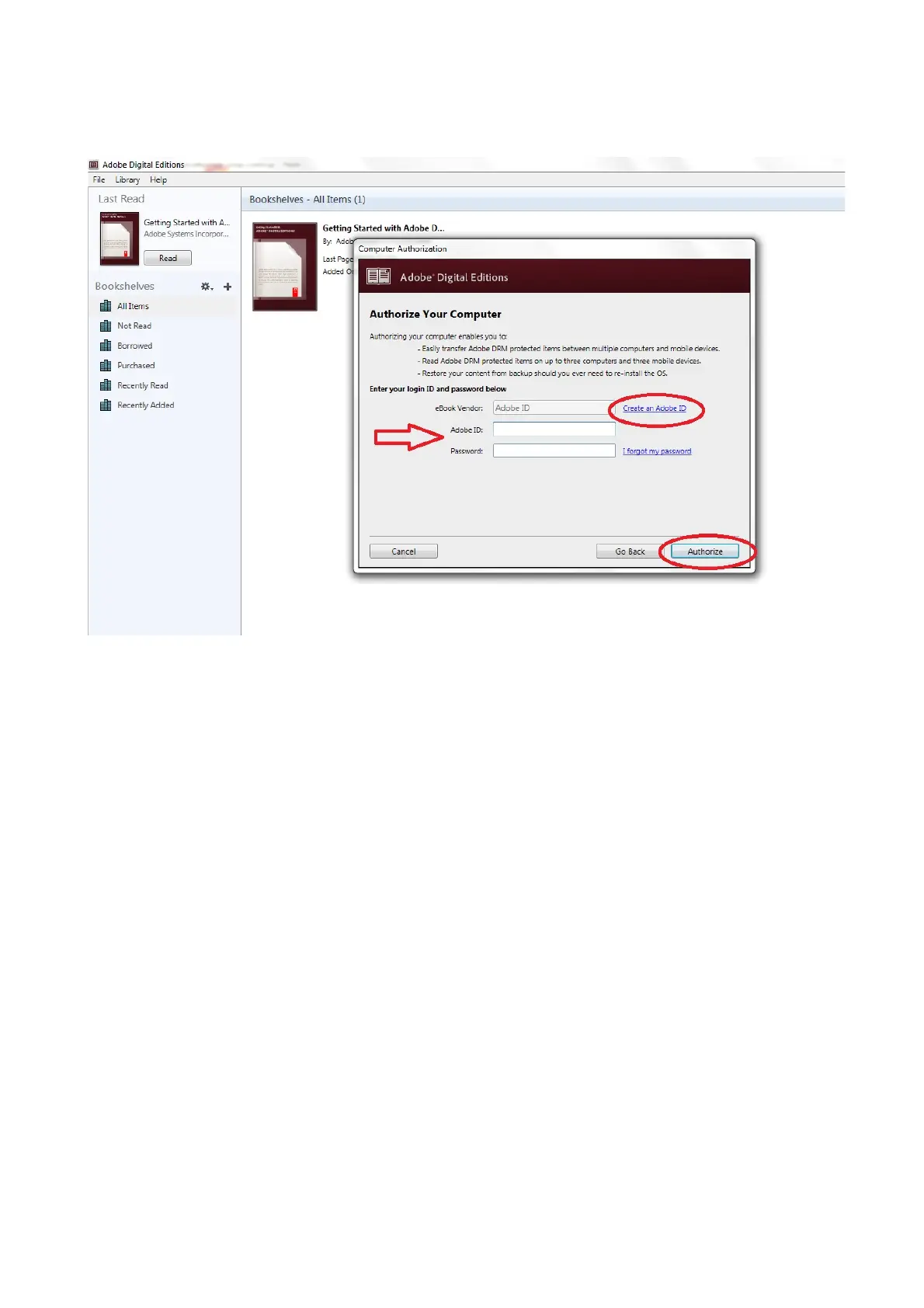 8. Now Adobe Digital Editions is authorized.