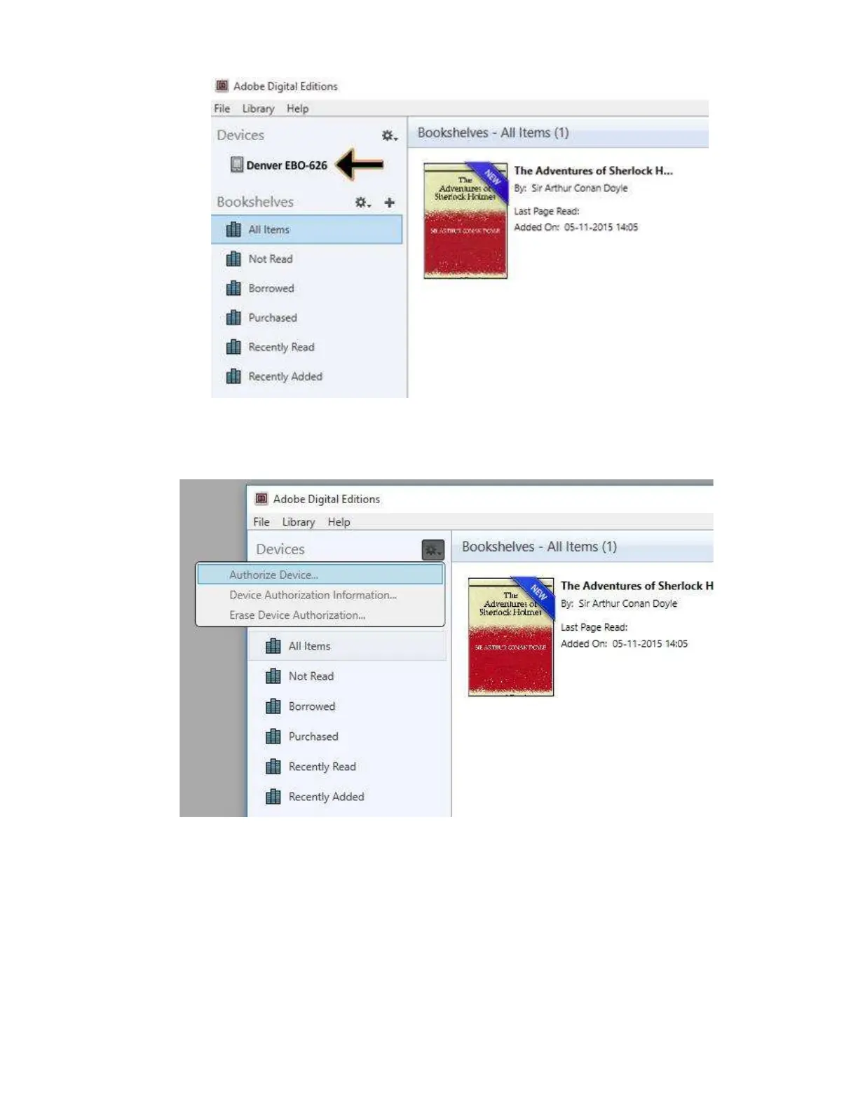 12. Now you drag the Ebook to Denver EBO-626 and notice there is a small green +. This is an indication