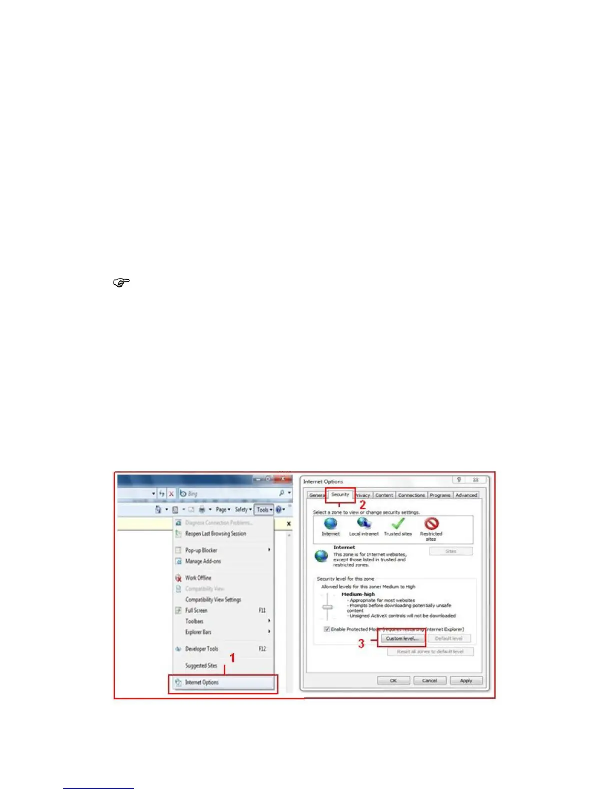 2. Change the ActiveX settings in “IE” browser > “Tool” > “Internet Options” > “Security” >