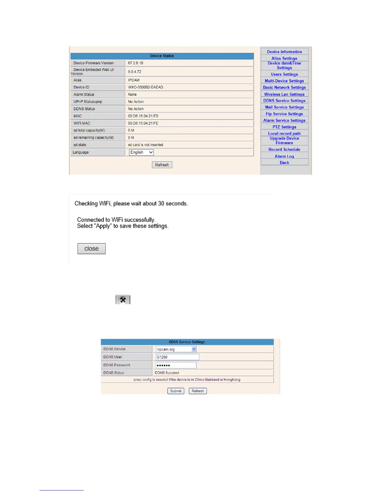 3). Submit, refresh, then DDNS status will be shown as “DDNS Succeed”.