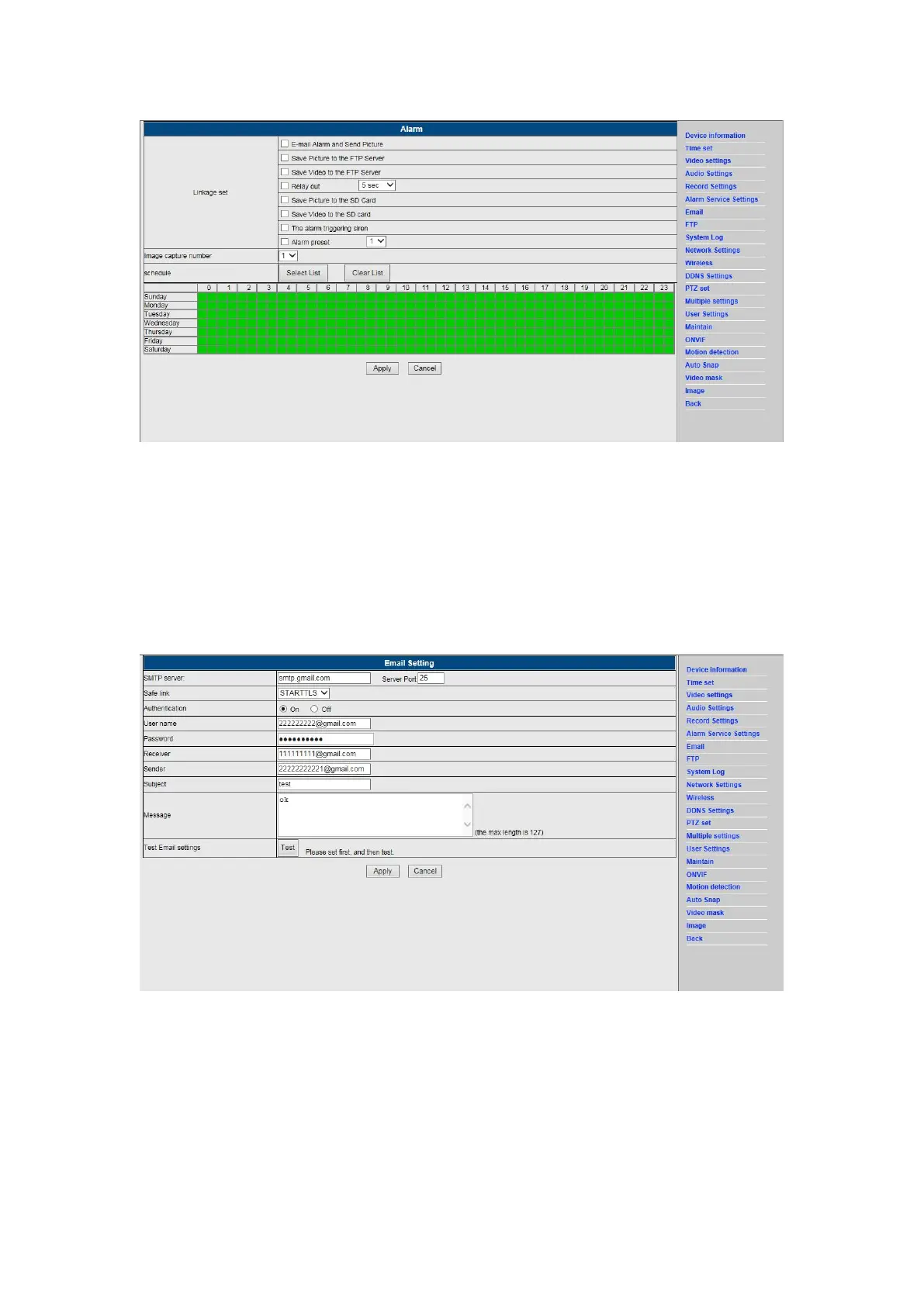 Note: This function only works if the IP camera is connected to the network. If you use Gmail,