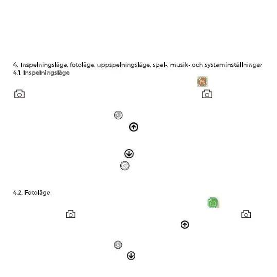 4. Inspelningsläge, fotoläge, uppspelningsläge, spel-, musik- och systeminställningar