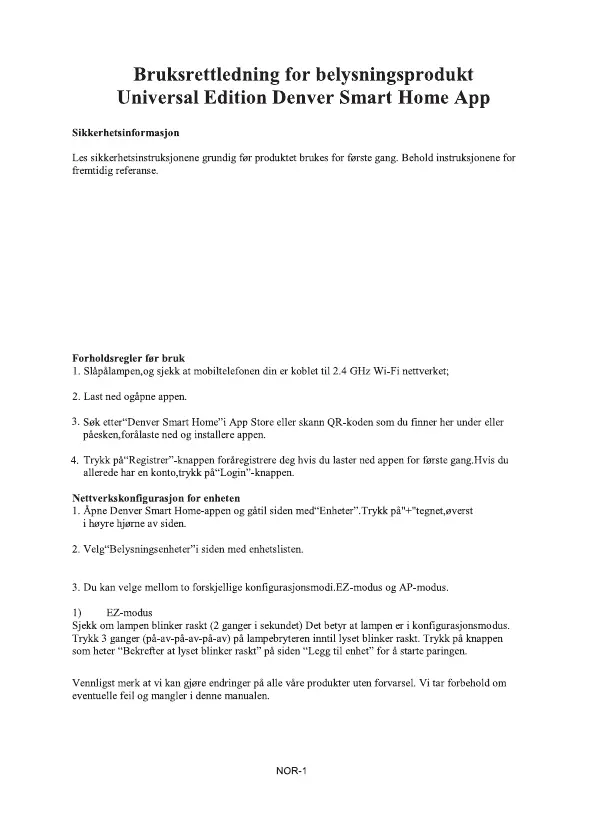 3. Produktet er kun ment for innendørs bruk i tørre forhold.