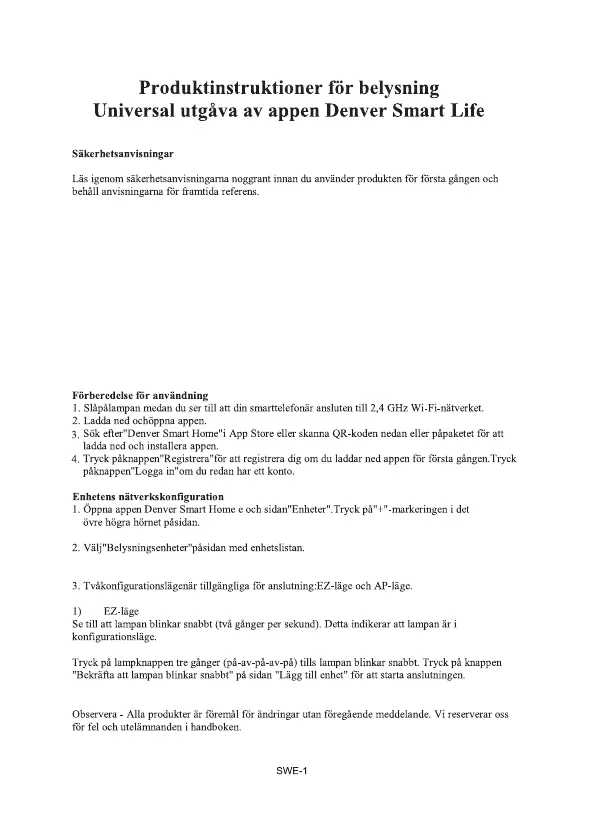 1. Håll produkten utom räckhåll för barn och husdjur.