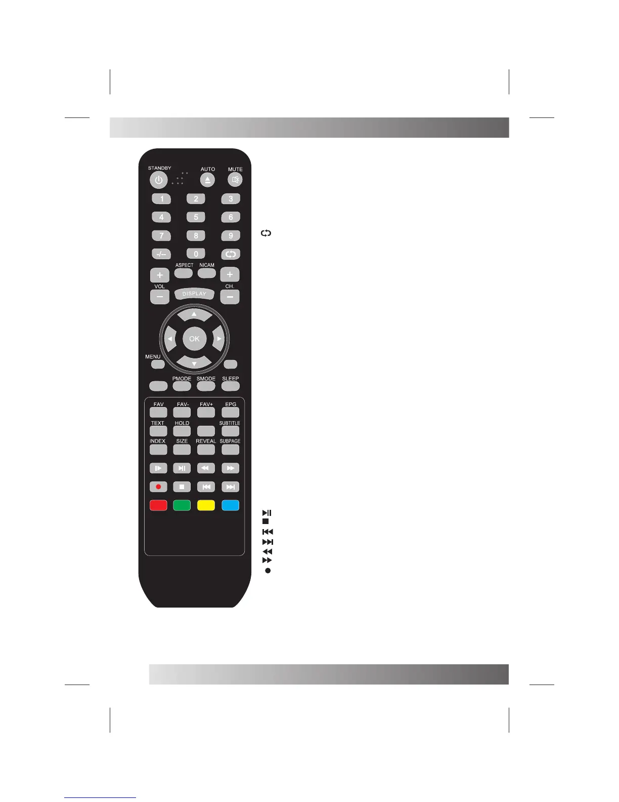 RED/ GREEN/ YELLOW/ BLUE: Navigation buttons in TV mode.
