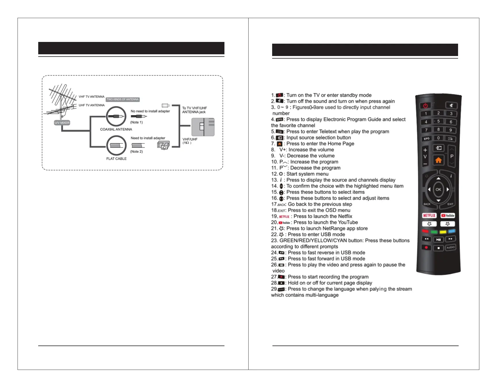 a. Connect the Plug of the antenna cable or CATV cable to the cable (not provided with this