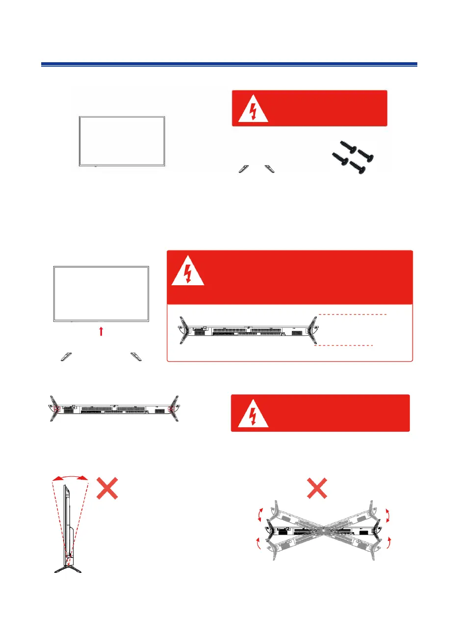 If you do not attach the stand correctly, the TV will be unstable and can possibly tip over.