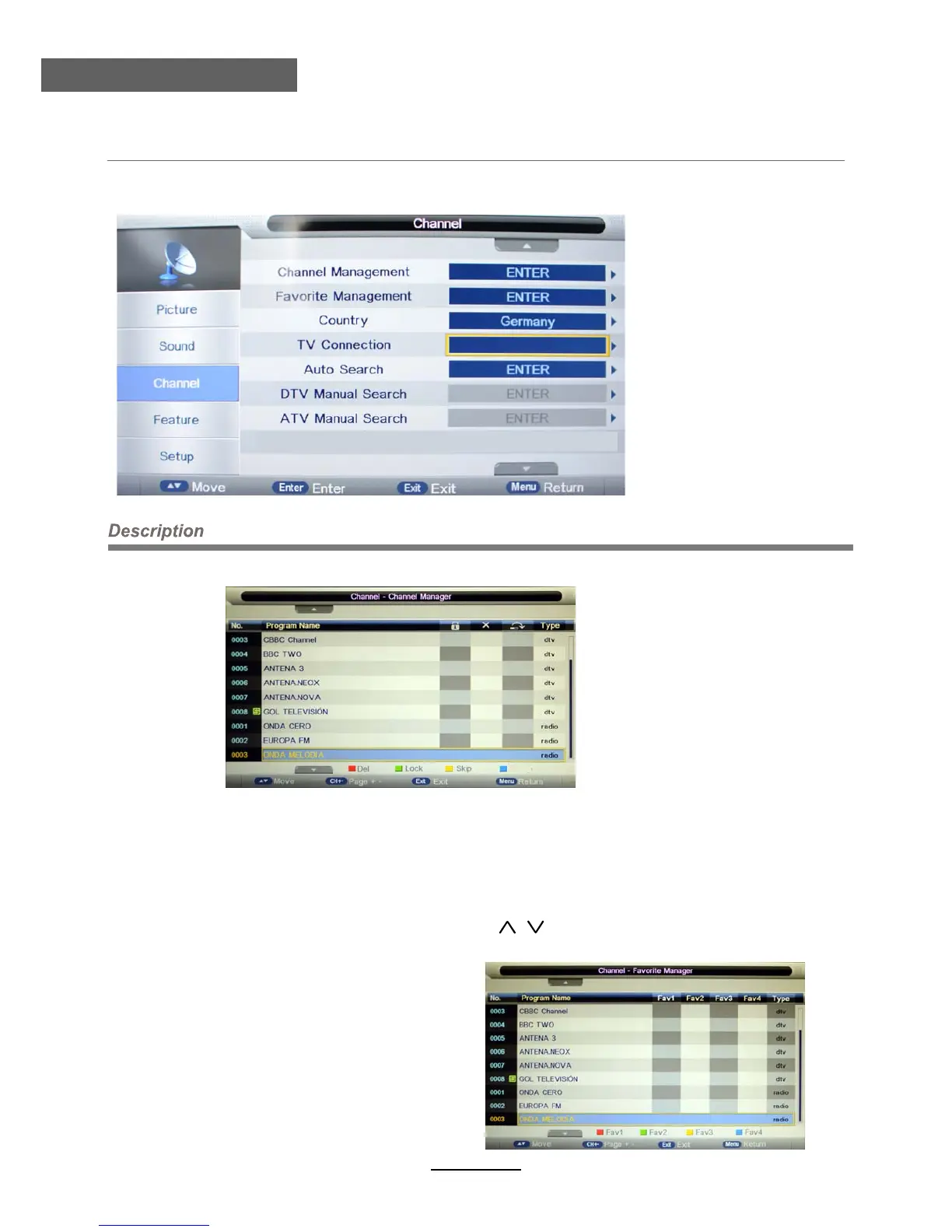 3. Channel menu(In ATV/DTV mode)