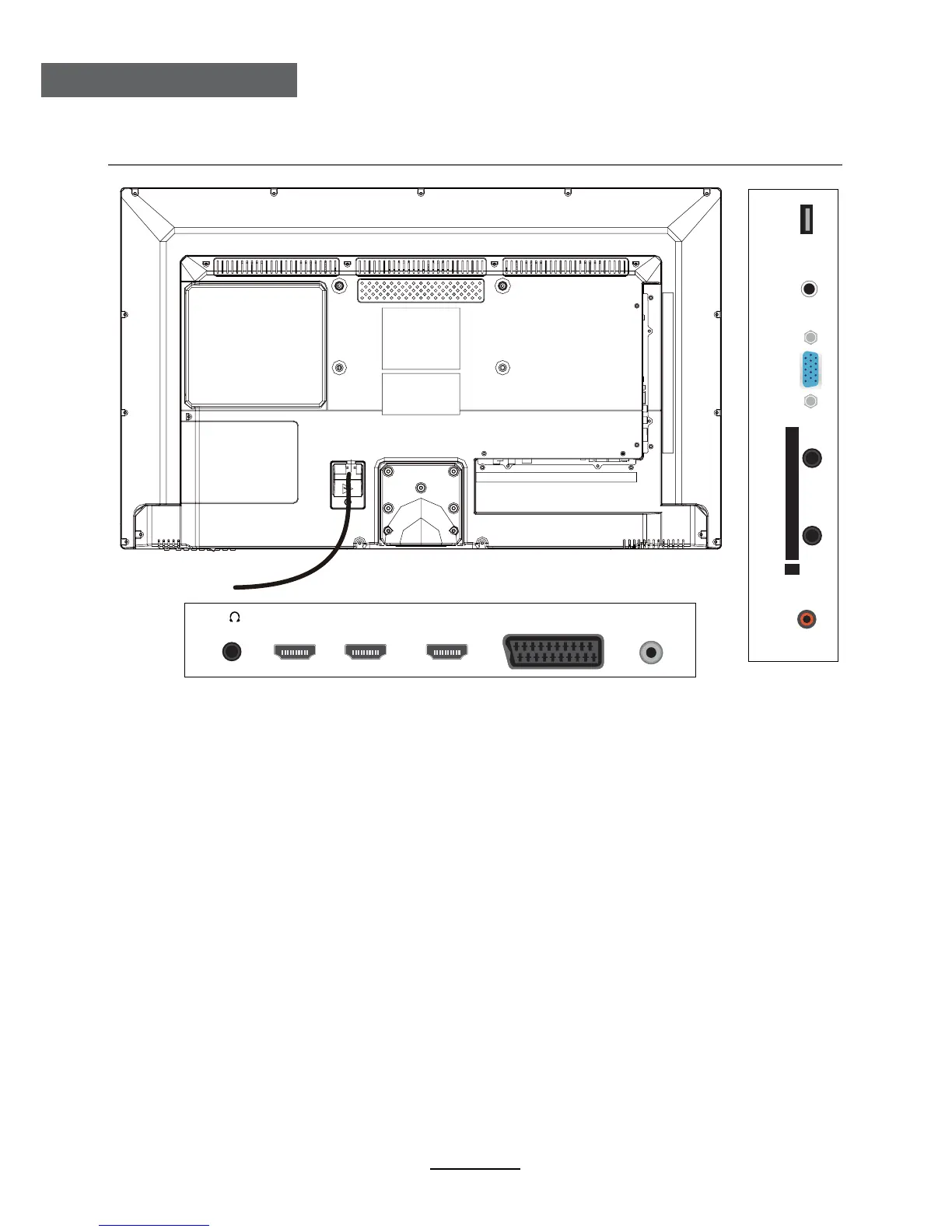 RF: Connect antenna or cable 75 Ohm coaxial to receive TV signal.