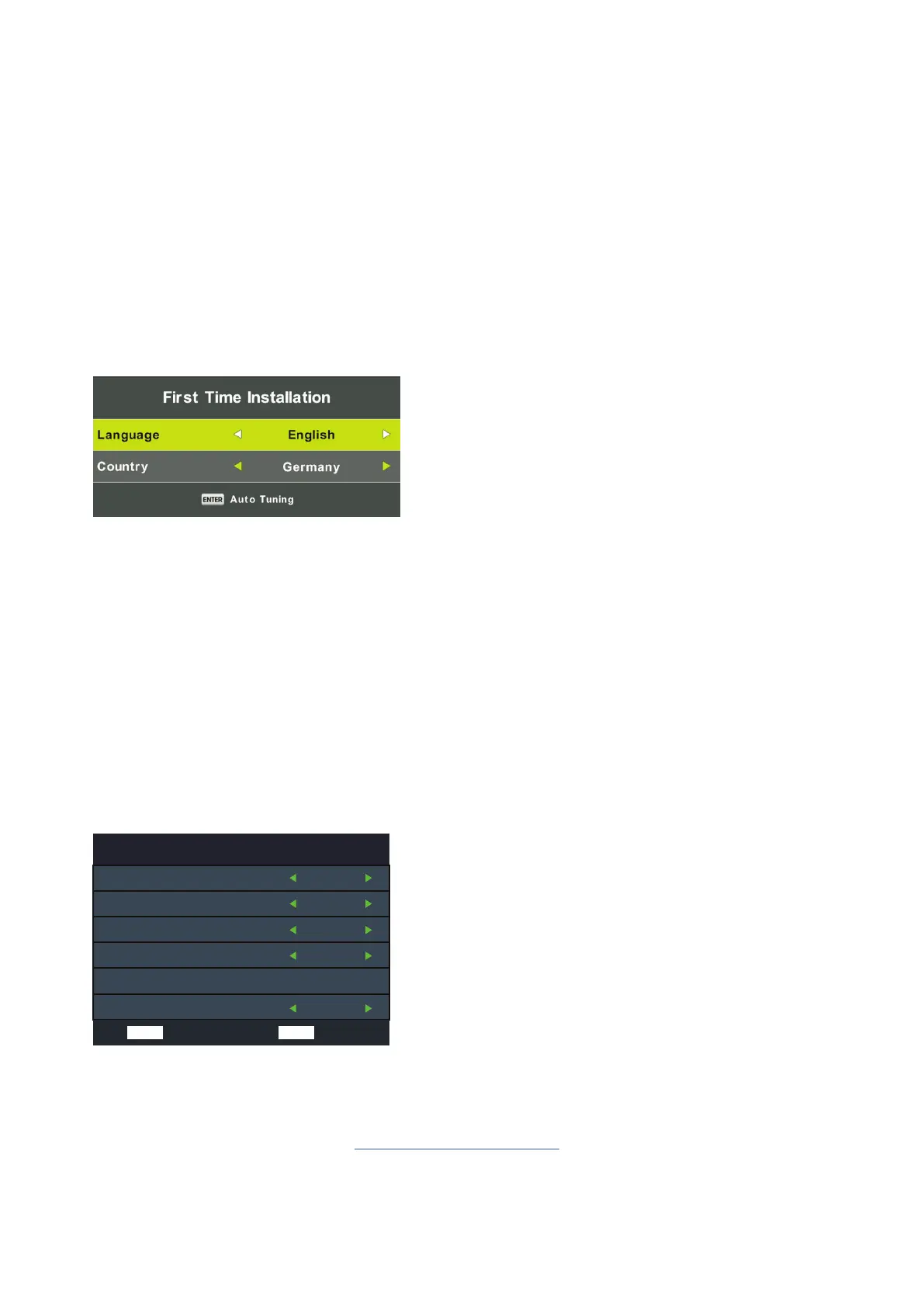 When you start the TV for the first time, you will enter a first time installation mode, Here you shall choose