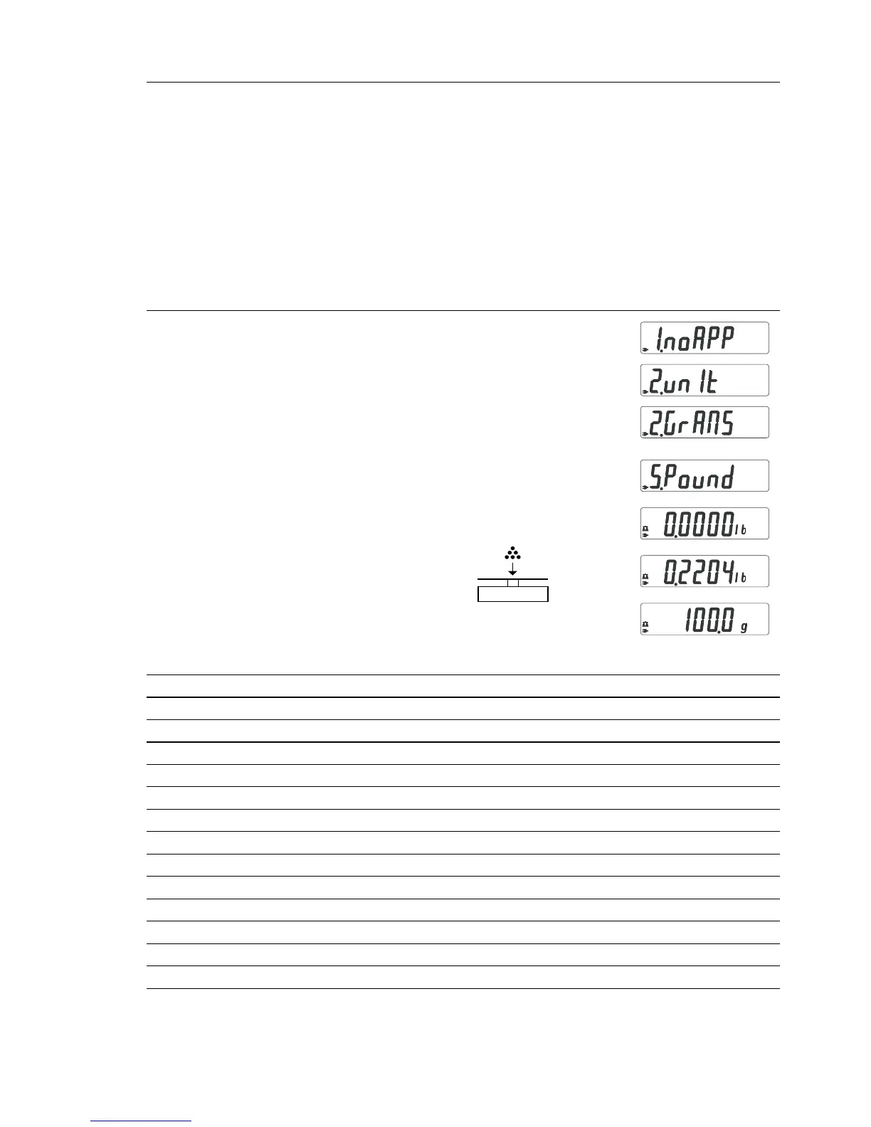 de pesée dans une unité sélectionnée (voir tableau) et en grammes.