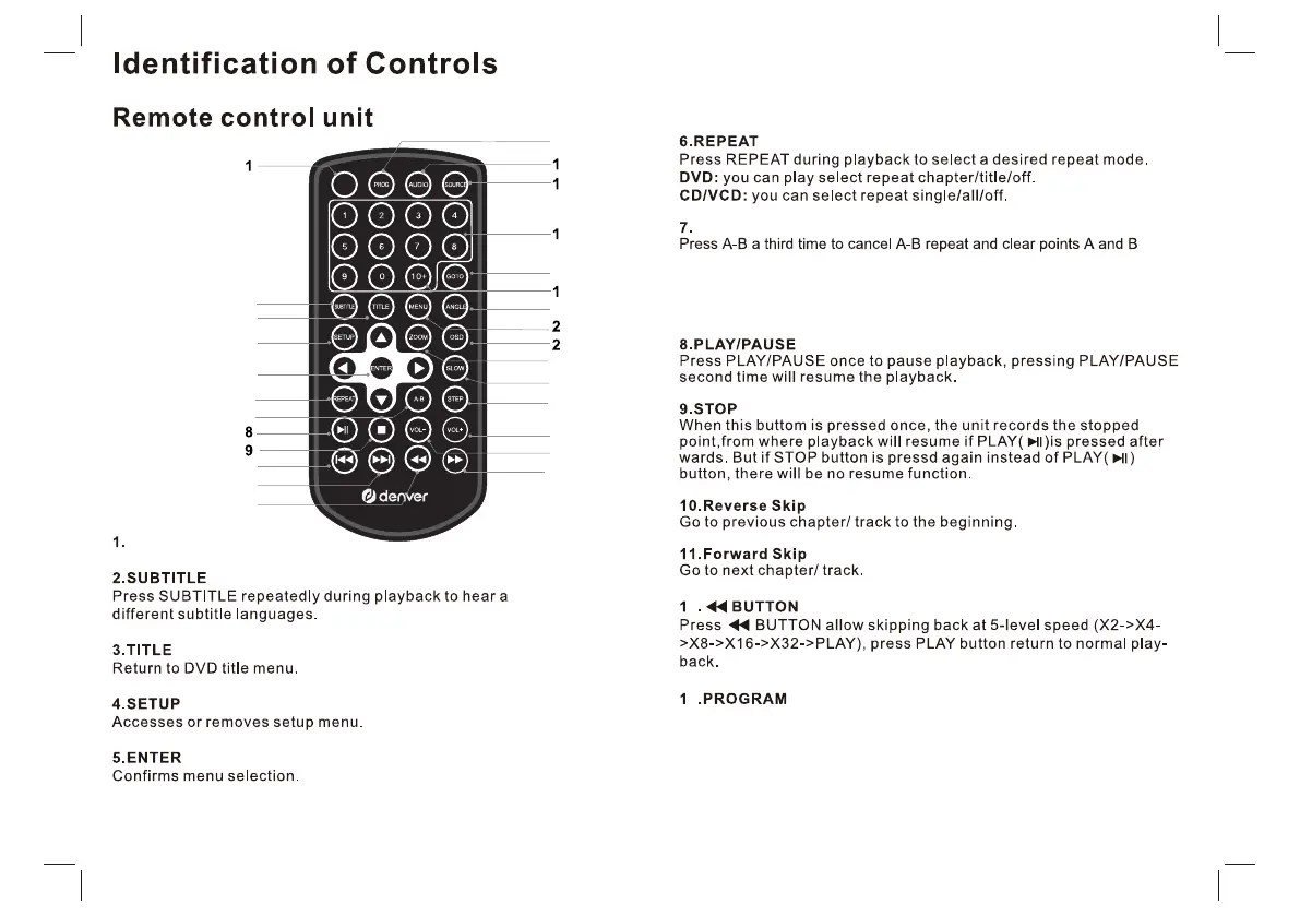Press PROG to get programme menu when reading DVD & VCD,