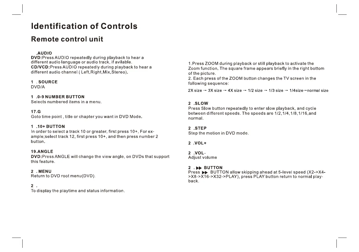 DVD/VCD: Use ZOOM to enlarge or shrink the video image.