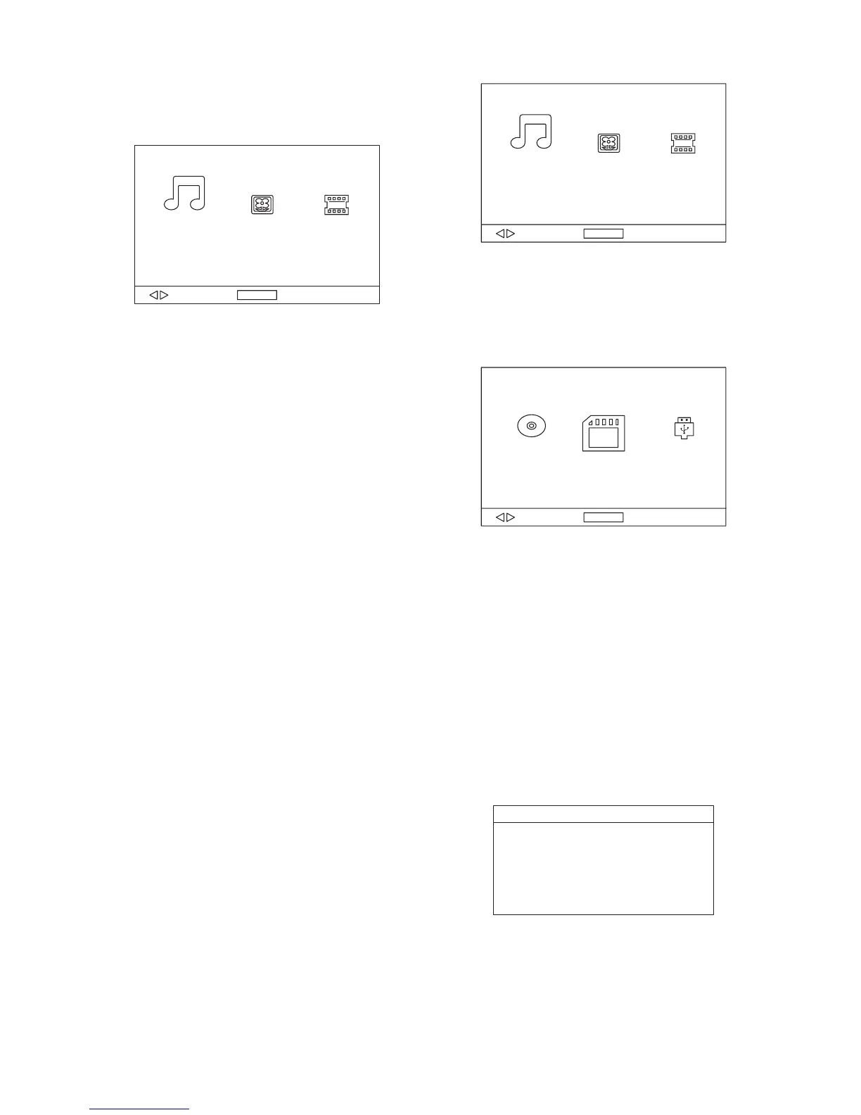 USB, card and disc via navigation LEFT/RIGHT button,