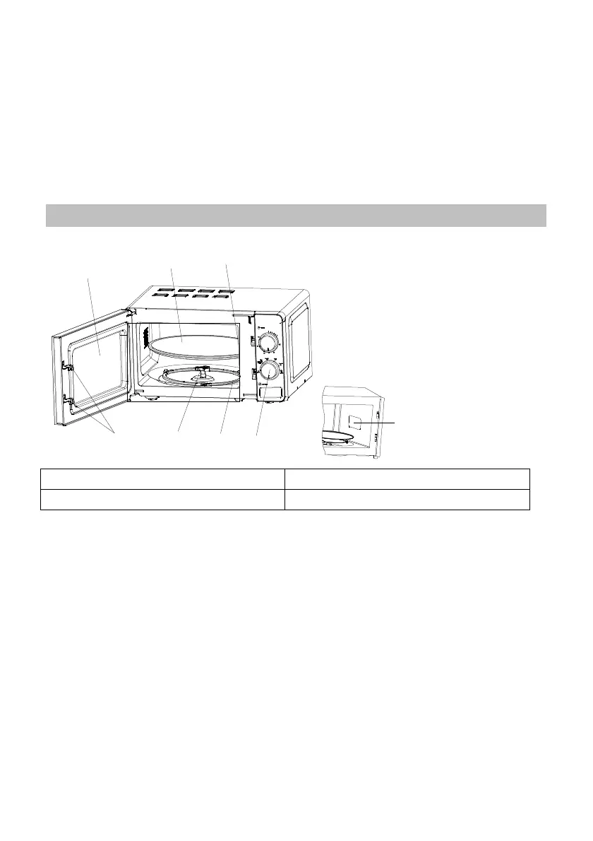 Szklany talerz obrotowy znajduje się na osi; silnik pod spodem