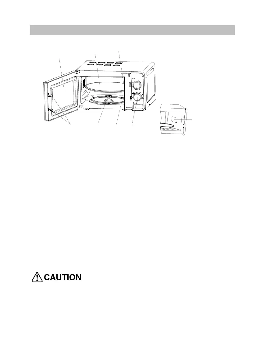 The food sits on the turntable, its rotation during operation