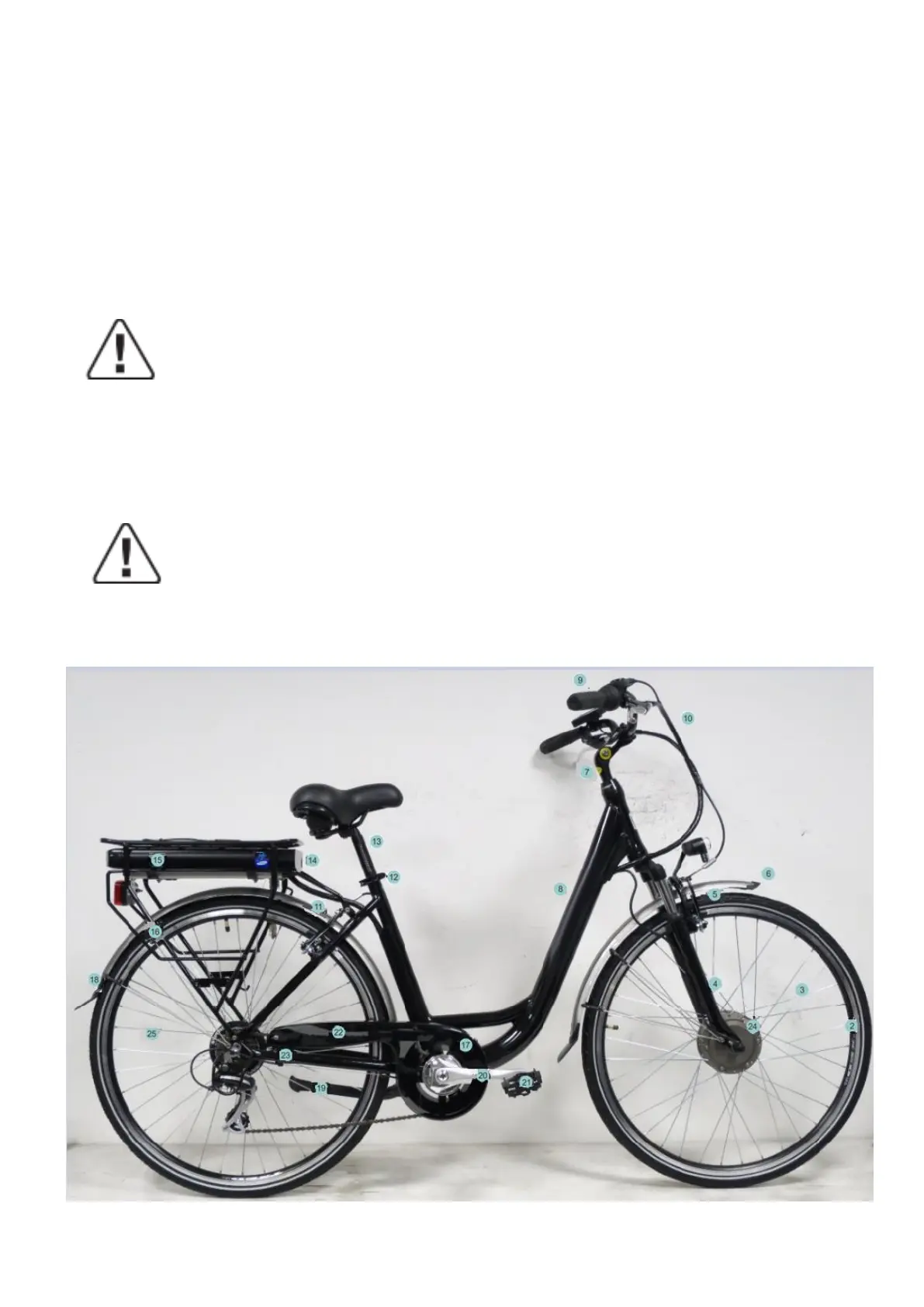 WARNING WHEELS: Every six months, your pedal electric assistance bicycle should be