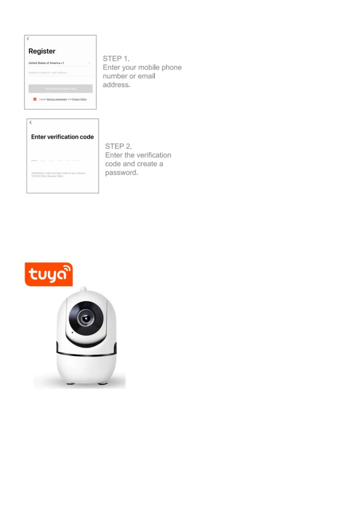 Denver SHC-150 - Register DENVER SMART HOME Account; Enter Mobile Number or Email; Verify Code and Create Password; Power Connection and Setup