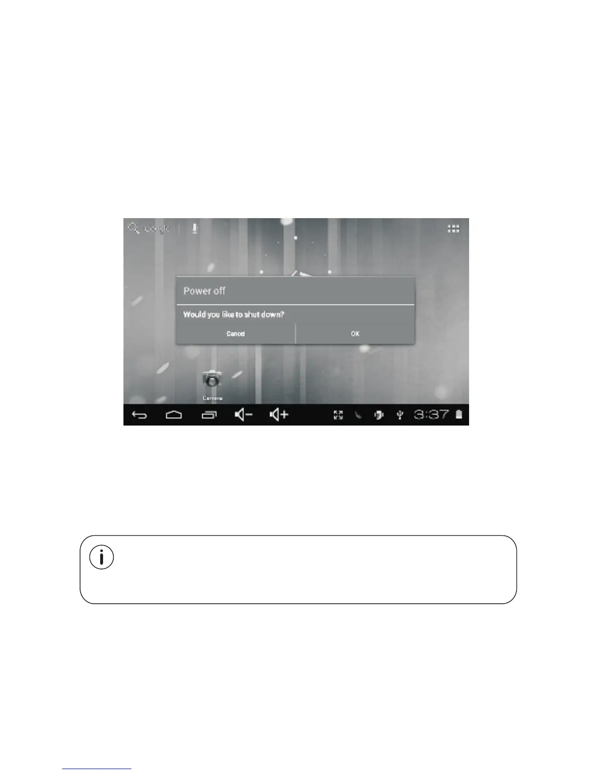 2. Touch ok the screen to turn off the tablet.