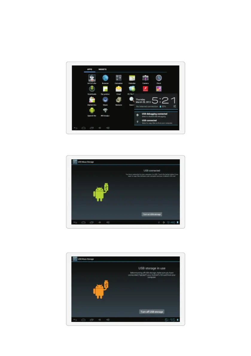 6.Når du vil afbryde overførsel af filer, skal du trykke på knappen Turn Off USB Storage