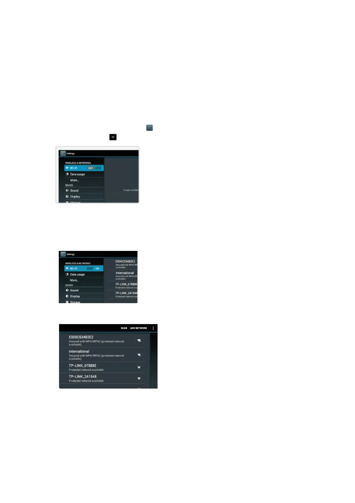 För att uppdatera listan över tillgängliga nätverk, tryck på knappen Scan.