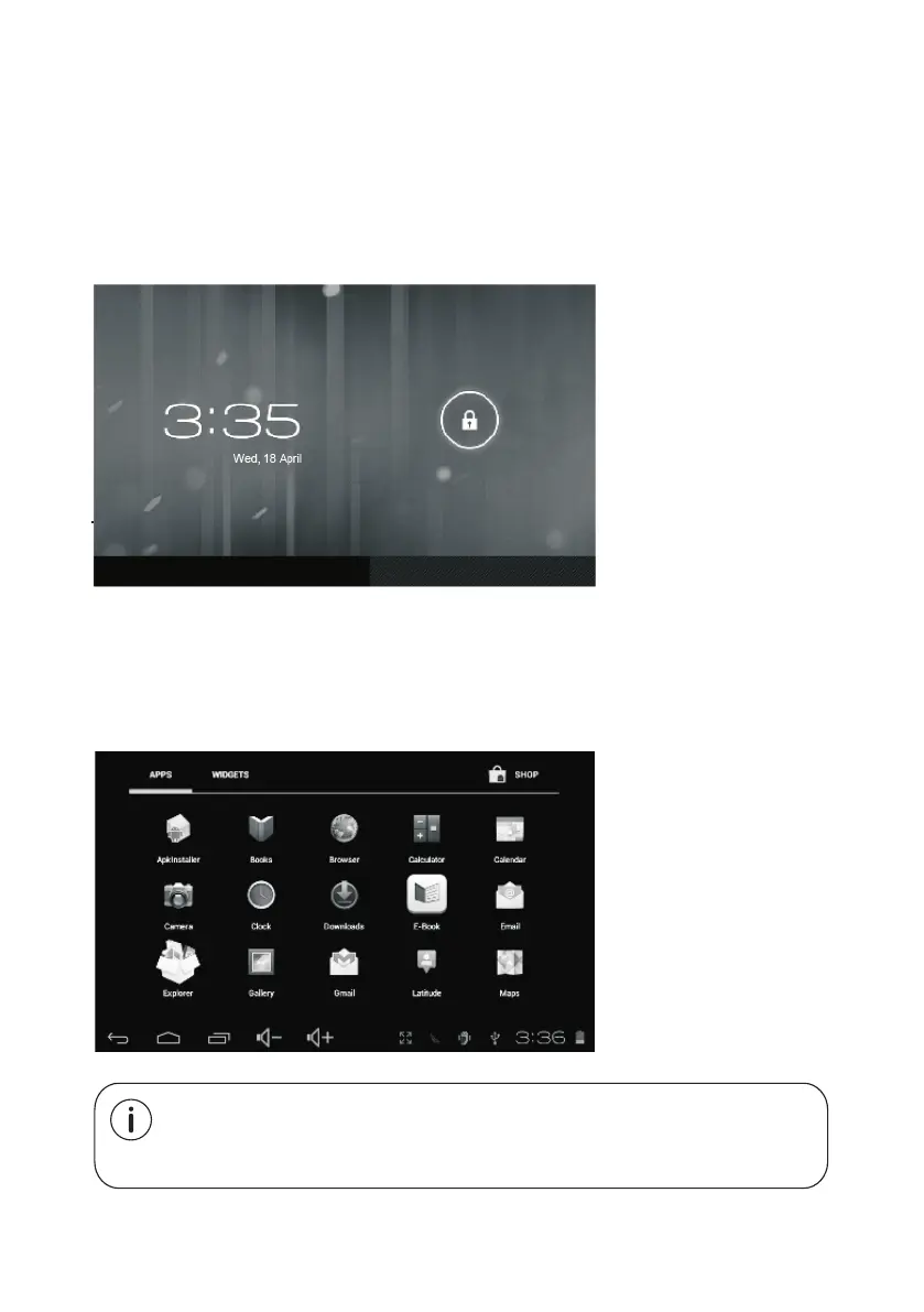 screen where there is an unlock icon shown. This will unlock tablet.