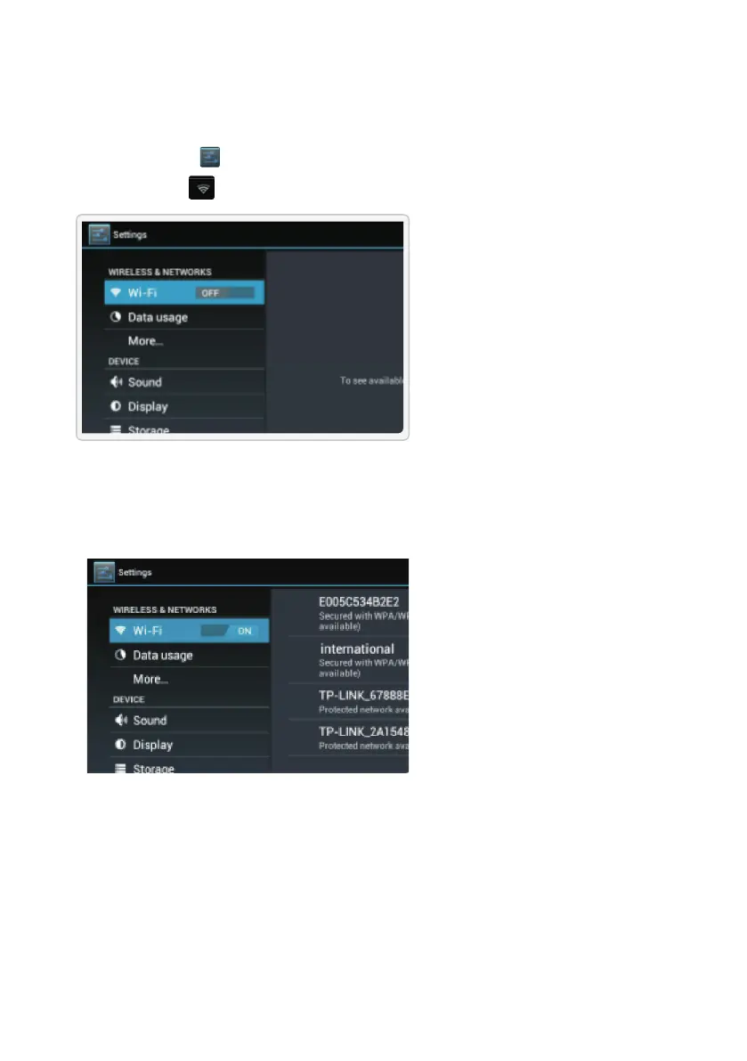 2.Locate the Wi-Fi setting and slide it to the On position.