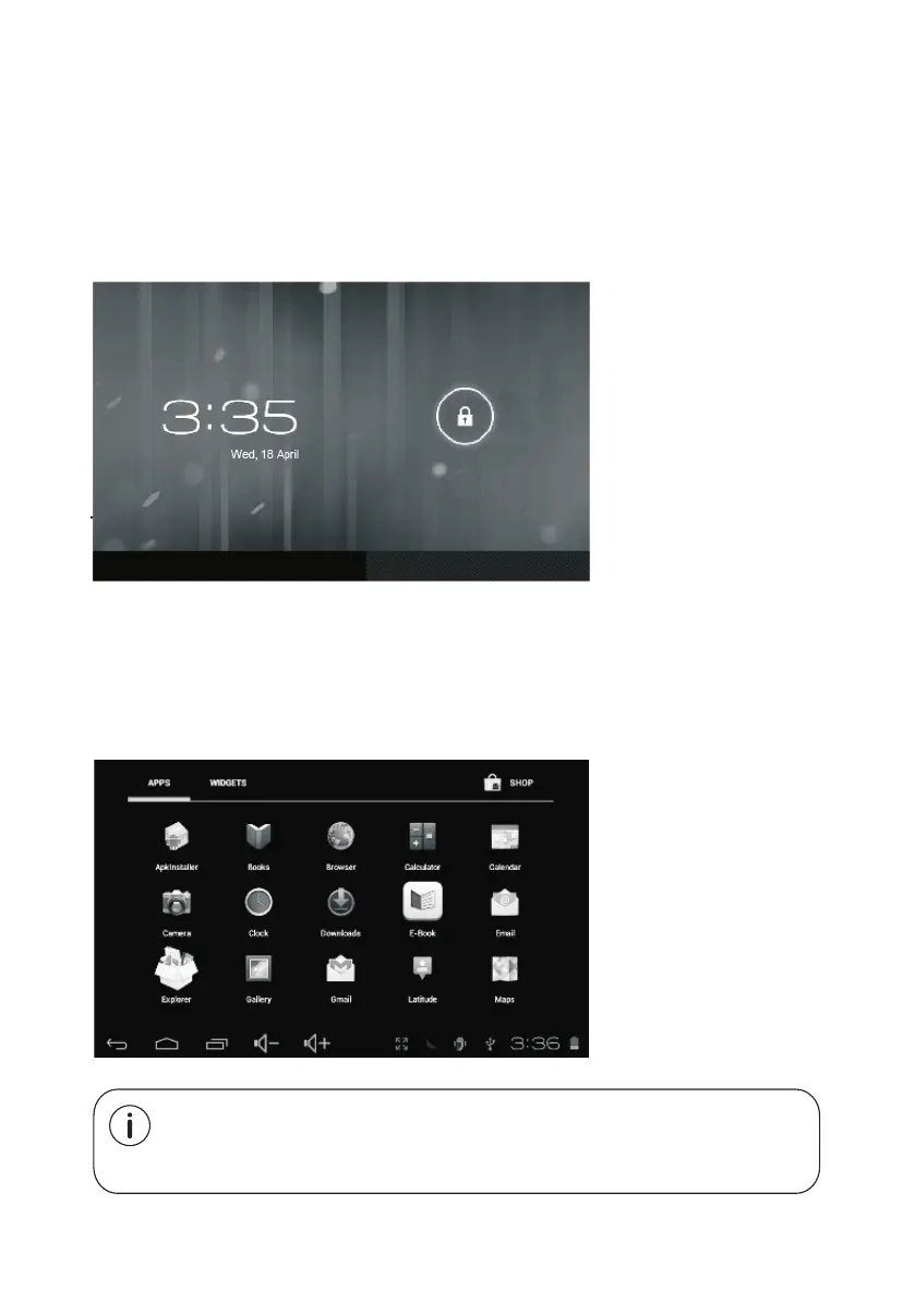Skærmen låses op ved at trække fingeren over skærmen fra venstre mod højre,