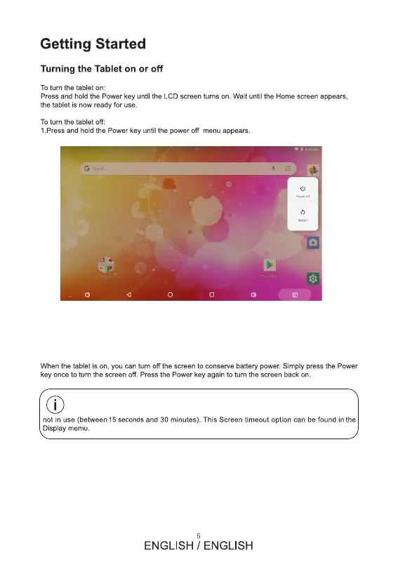 To conserve battery life, the screen can be set to turn off automatically when the tablet is