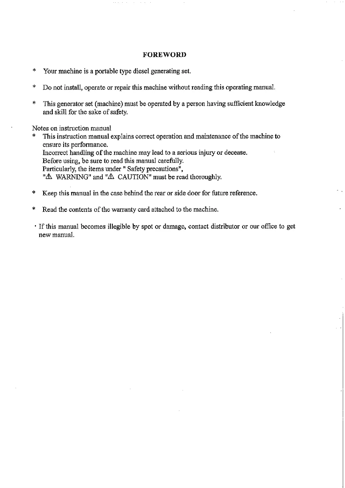 * This generator set (machine) must be operated by a person having sufficient knowledge