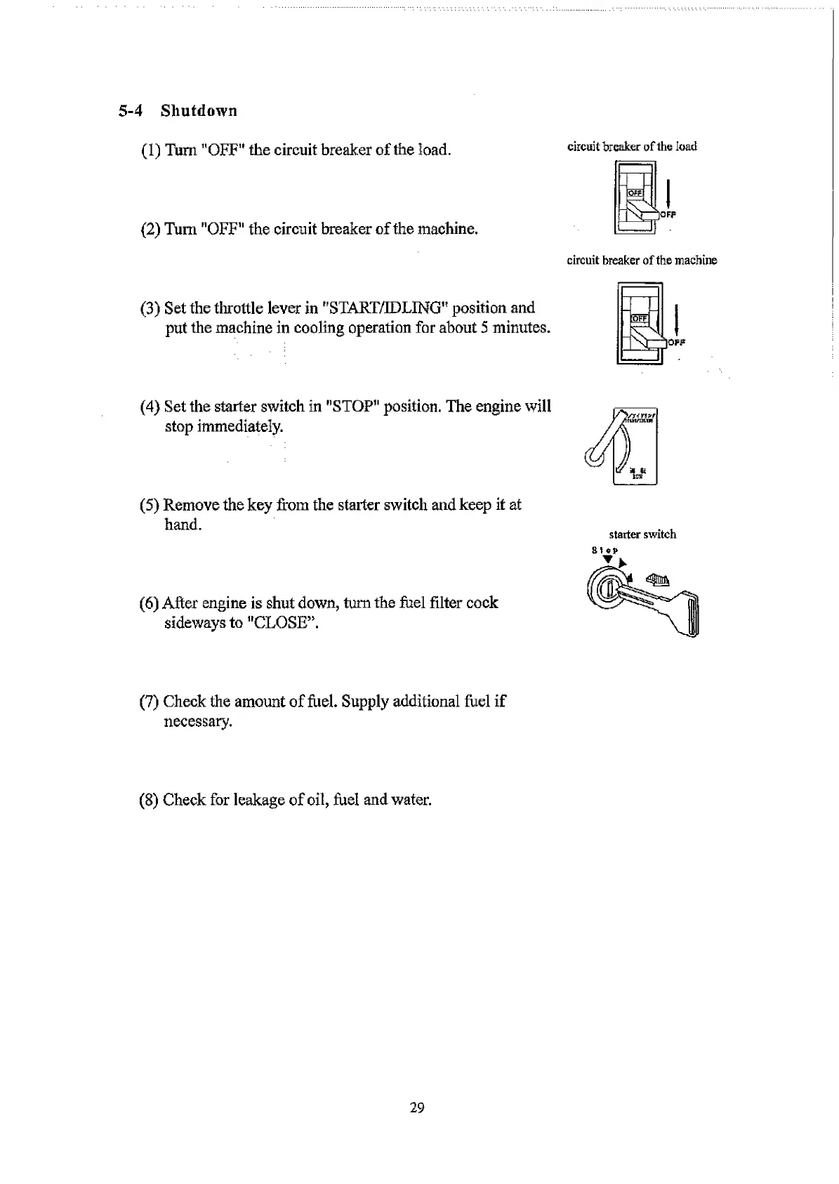 (4) Set the starter switch in "STOP’1 position. The engine will