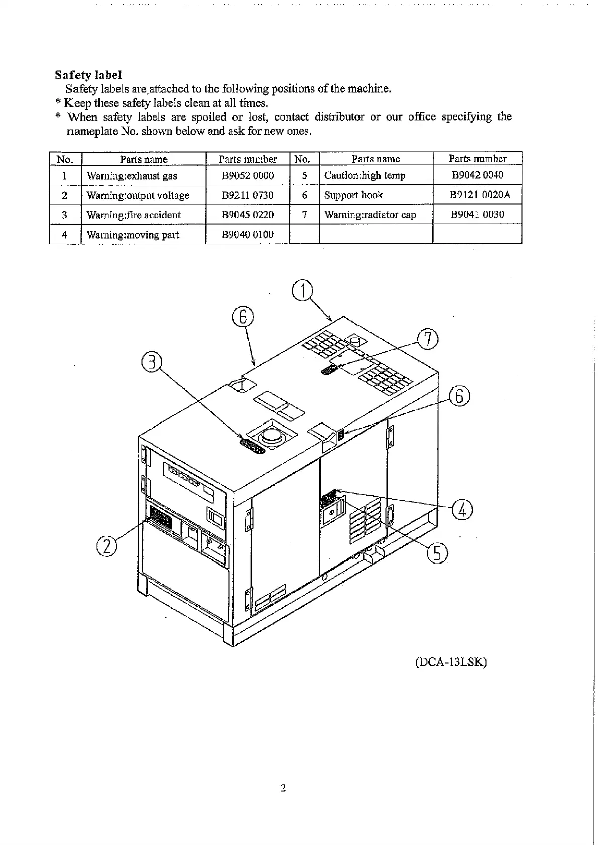 * When safety labels are spoiled or lost, contact distributor or our office specifying the