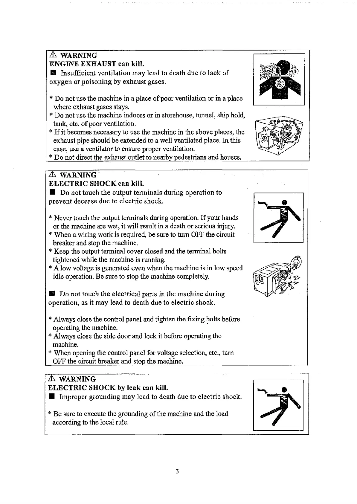 * Do not use the machine indoors or in storehouse, tunnel, ship hold,