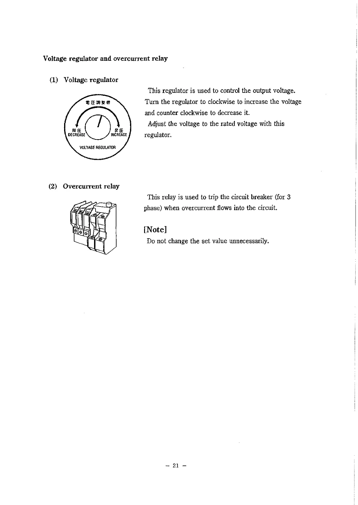 Voltage regulator and overcurrent relay
