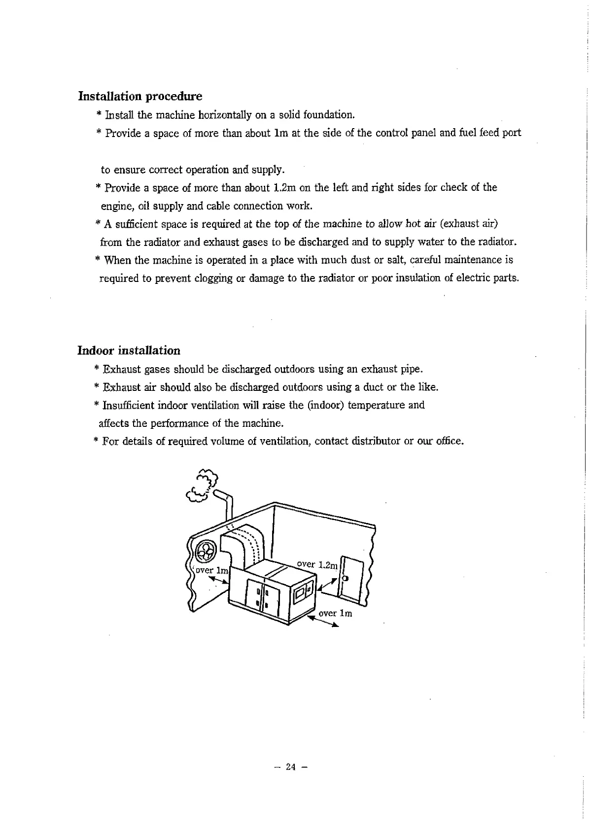* Provide a space of more than about lm at the side of the control panel and fuel feed port