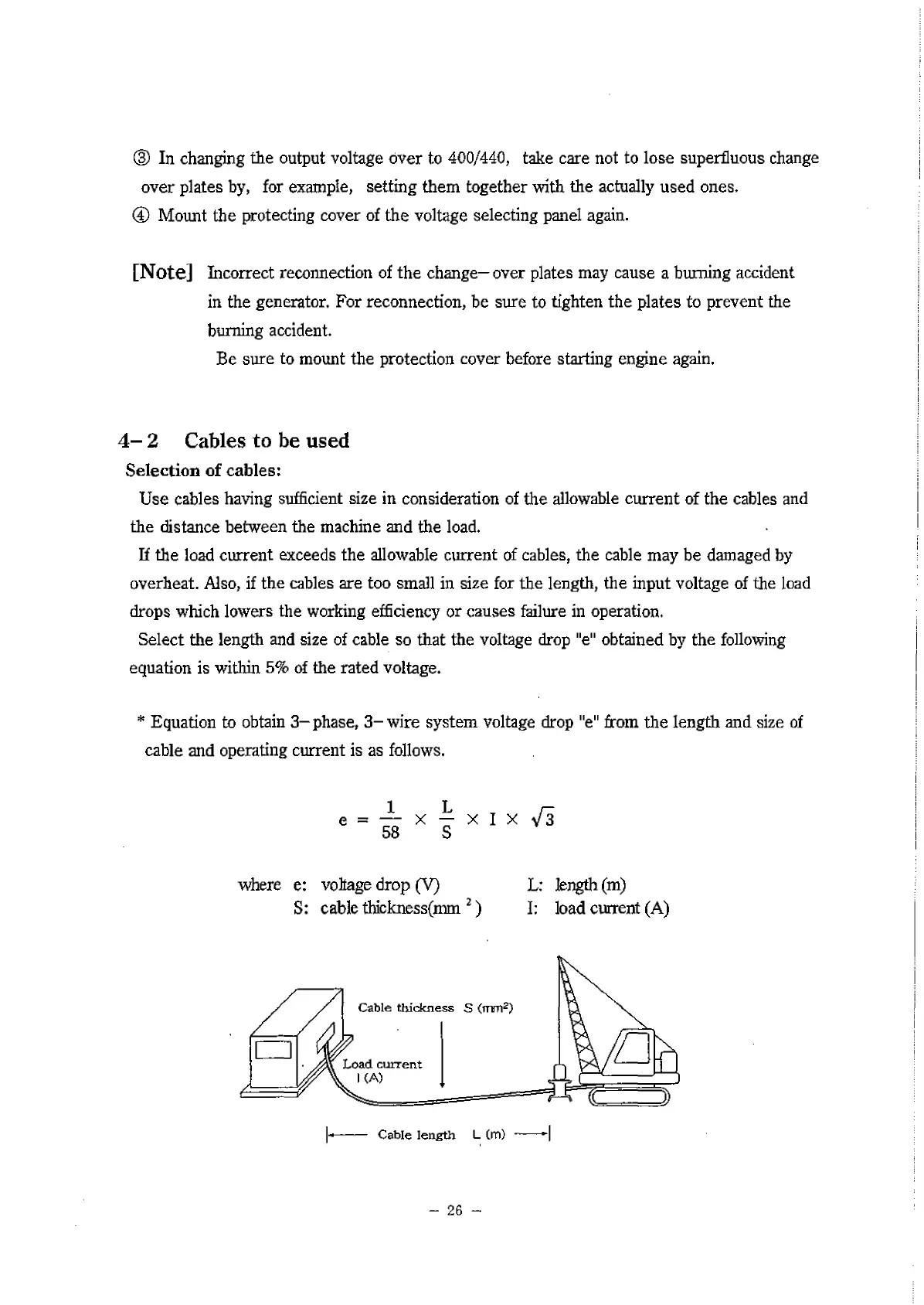 in the generator. For reconnection, be sure to tighten the plates to prevent the
