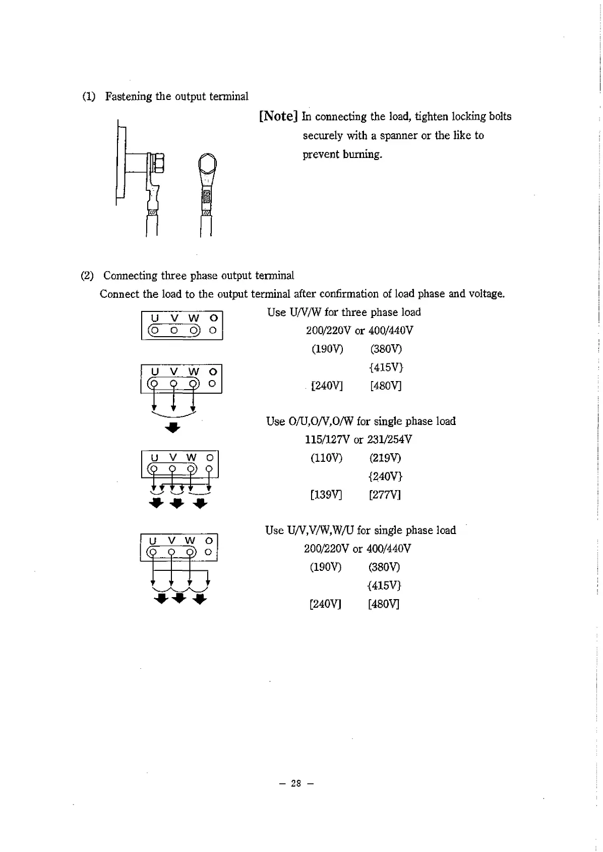 Connect the load to the output terminal after confirmation of load phase and voltage.