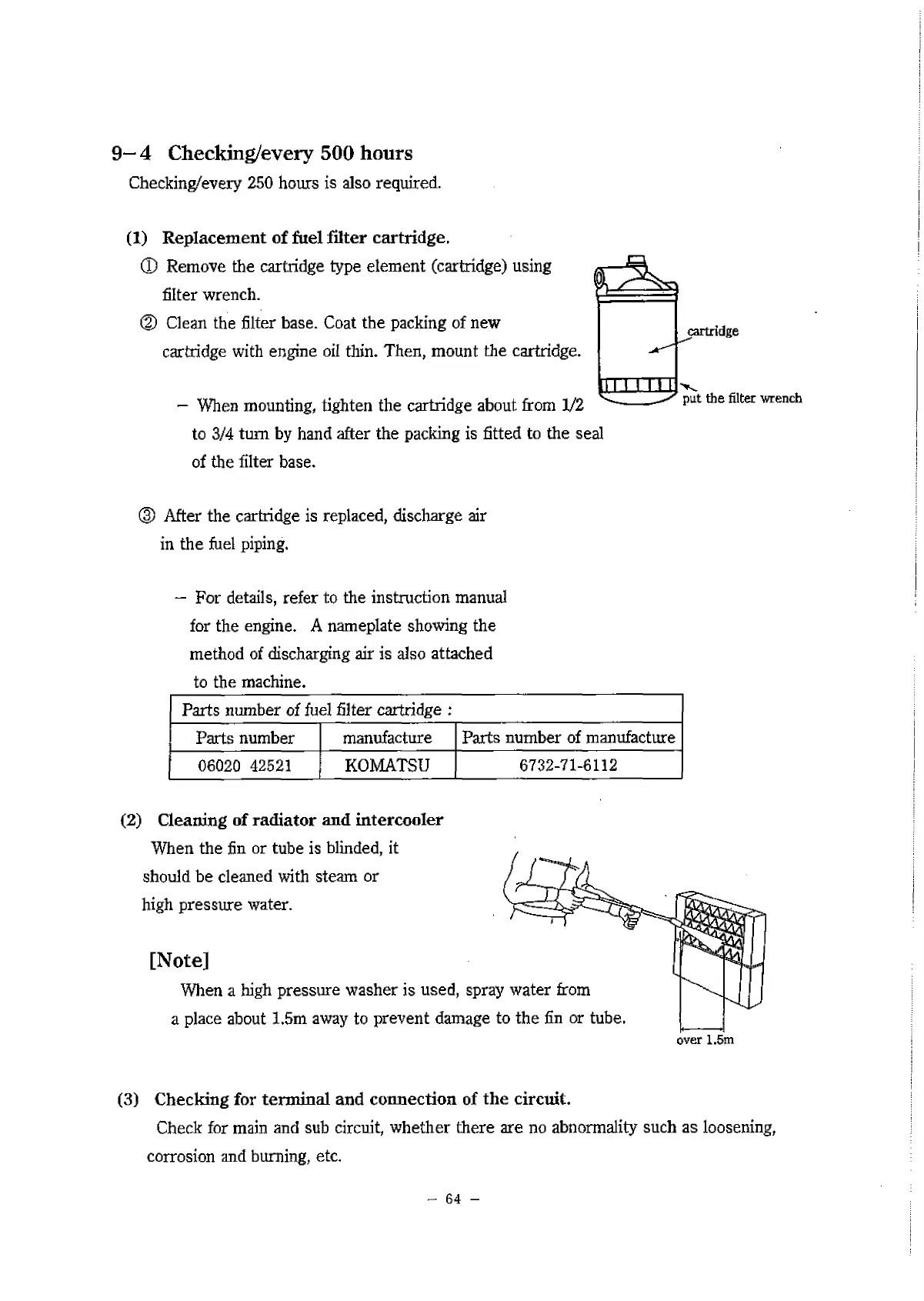 (1) Replacement of fuel filter cartridge.