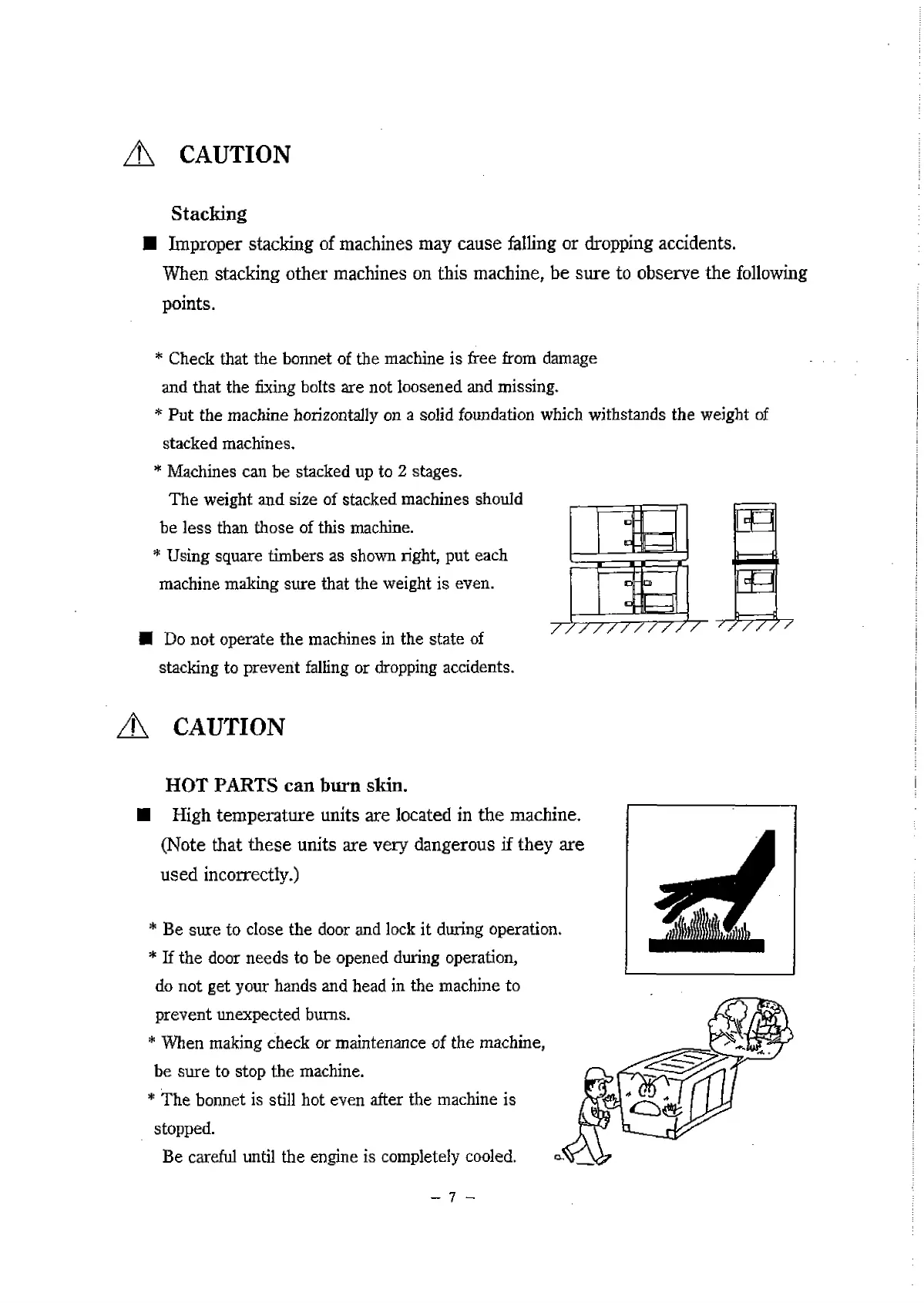 ■ Improper stacking of machines may cause falling or dropping accidents.