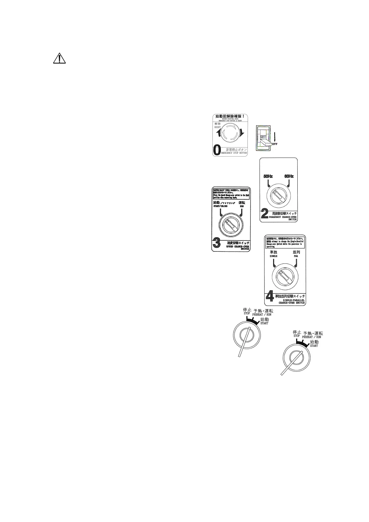 * Do not start the engine when the machine and the load circuit breaker are ON,