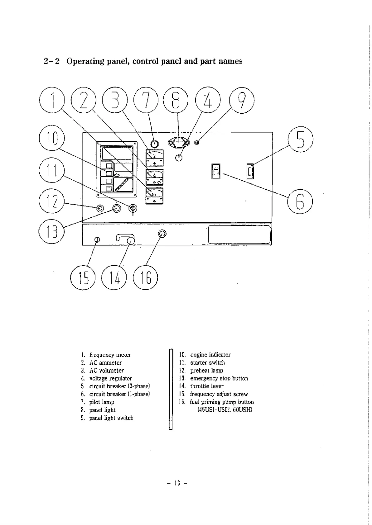 2 - 2 Operating panel, control panel and part names