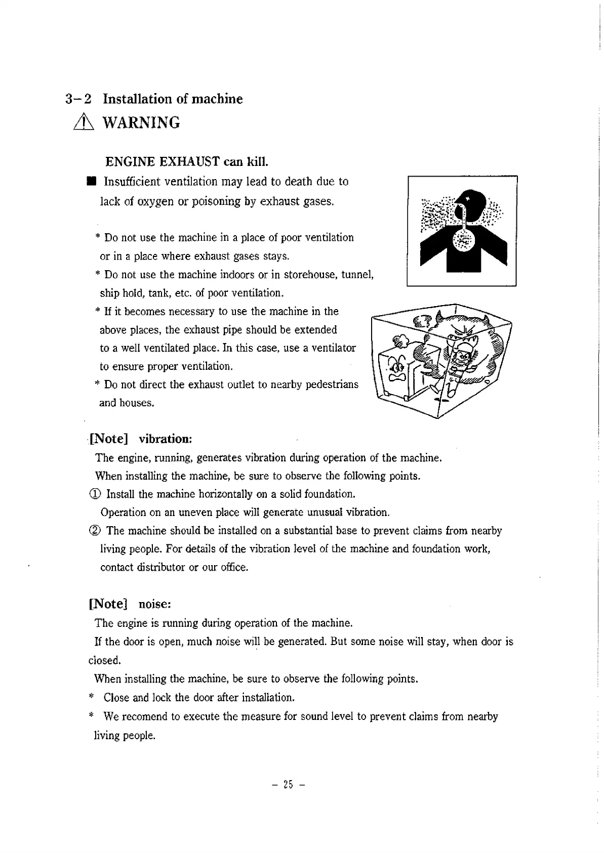 * Do not use the machine indoors or in storehouse, tunnel,