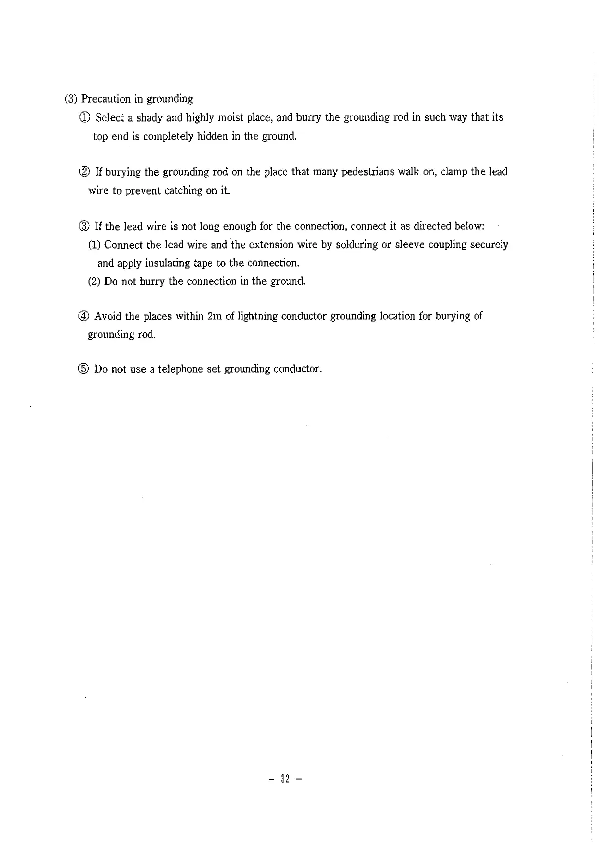 (3) Precaution in grounding