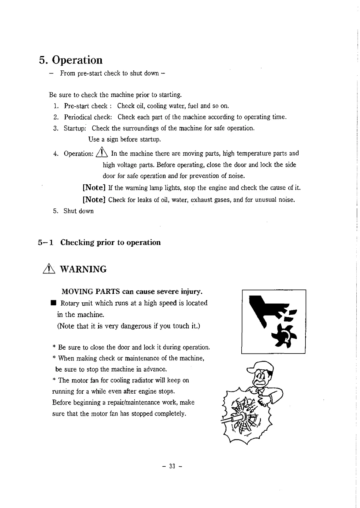 4. Operation: / j \ In the machine there are moving parts, high temperature parts and