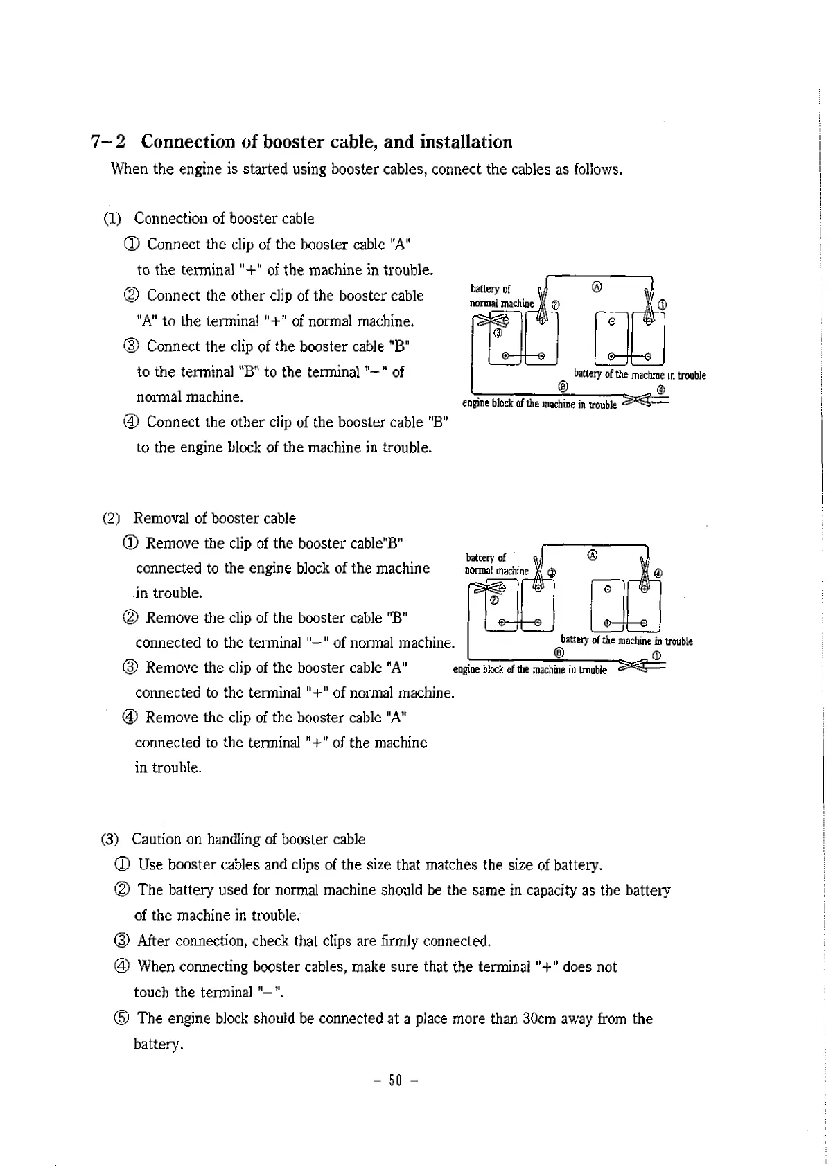 @ When connecting booster cables, make sure that the term inal"+" does not