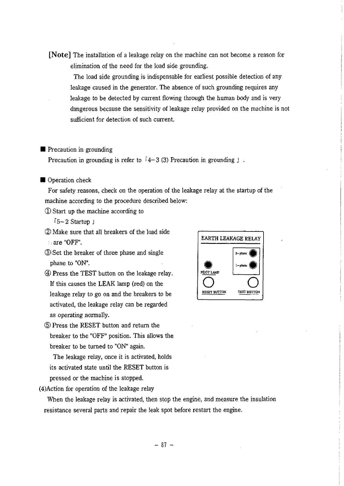 [Note] The installation of a leakage relay on the machine can not become a reason for