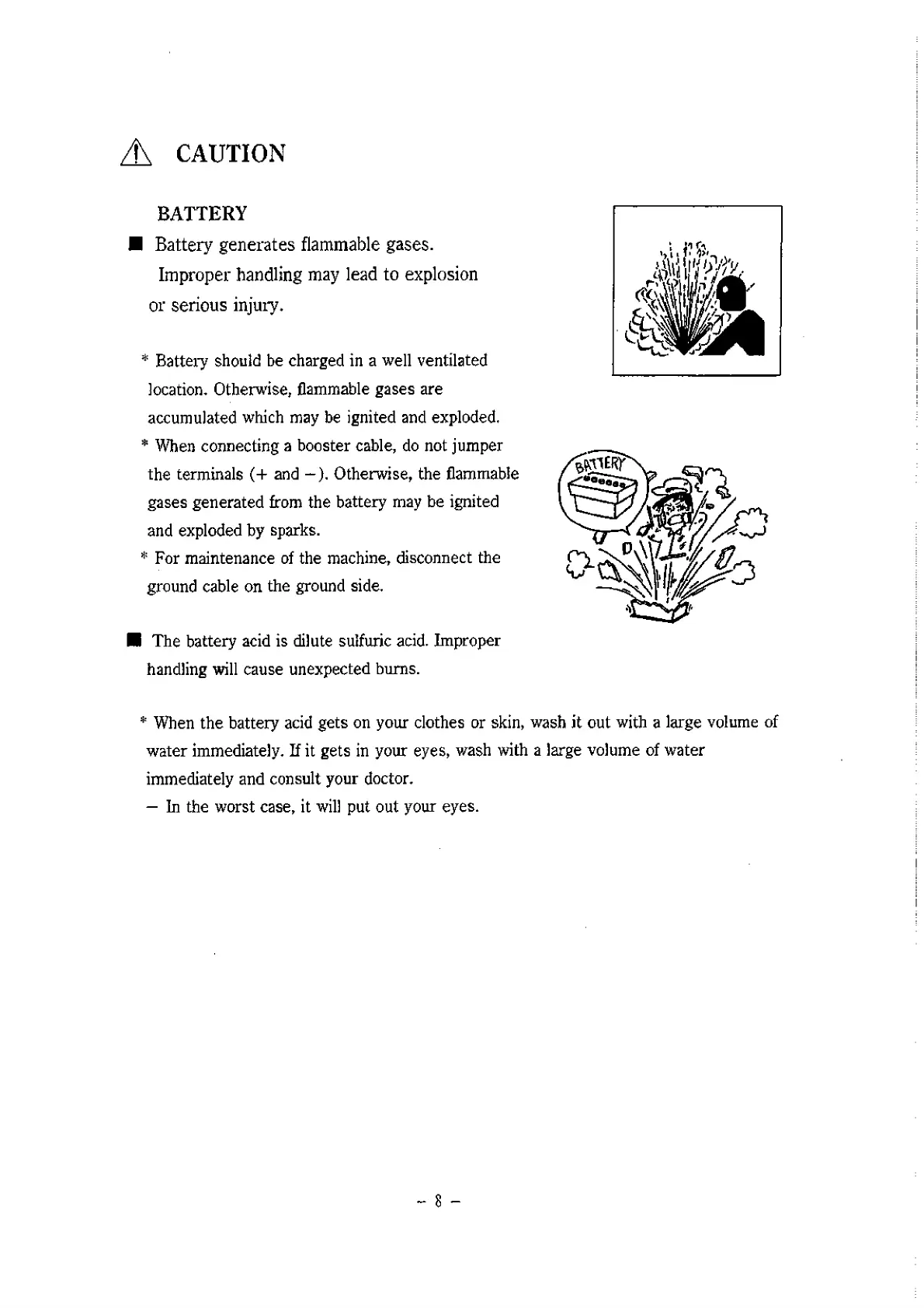 * When the battery acid gets on your clothes or skin, wash it out with a large volume of
