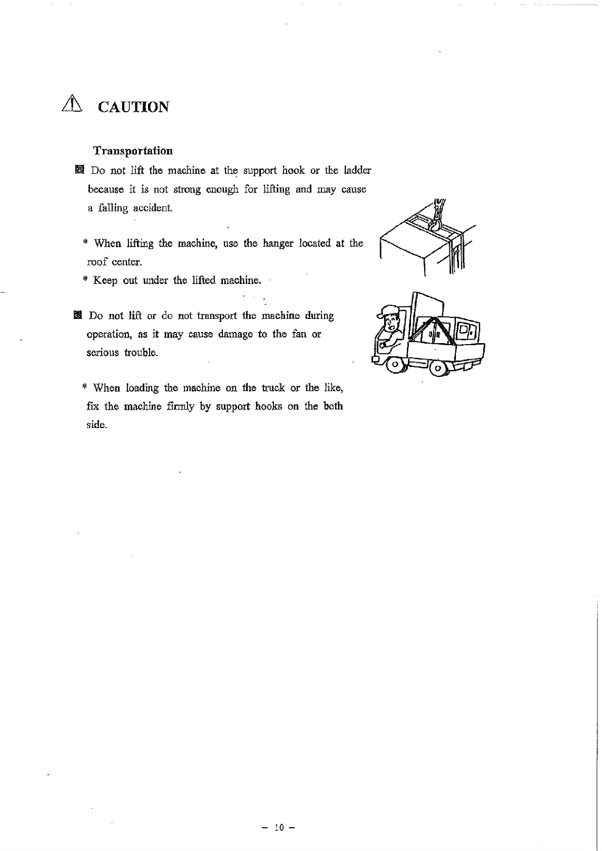 * When loading the machine on the truck or the like,