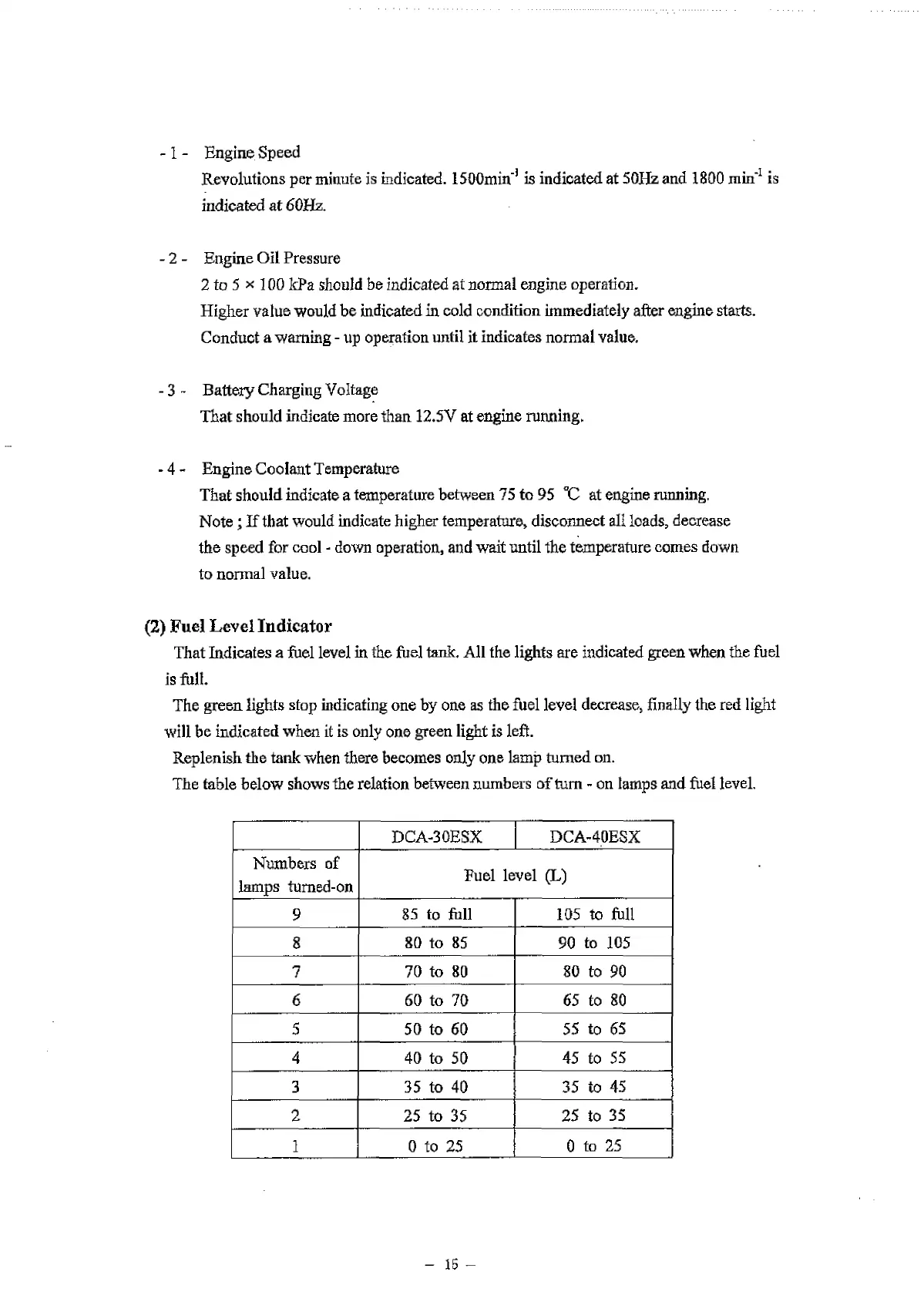 (2) Fuel Level Indicator
